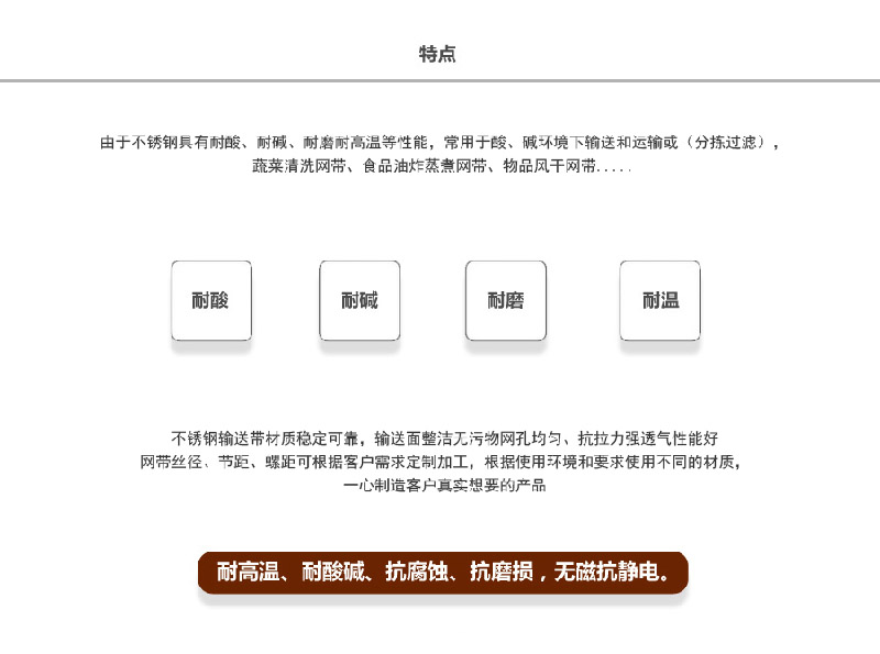 輸送鏈板廣泛用于玻璃制品行業(yè)的退火爐鏈板、烤花爐鏈板等。食品加工行業(yè)、脫水蔬菜、速凍食品單凍機(jī)前處理鏈板、鏈網(wǎng)。粉末冶金、金屬熱處理、淬火、燒結(jié)、釬焊、焙燒、光亮、發(fā)黑、軸承、滲碳高溫爐鏈板、擋板式鏈板、涂裝烘干線輸送鏈板、泡沫鎳還原生產(chǎn)線鏈板,清洗機(jī)、提升機(jī)、干燥機(jī)、烘干機(jī)、固化爐鏈板。各輸送工藝鏈網(wǎng)、鏈板、速凍、烘烤機(jī)械的平面輸送、螺旋輸送、食品機(jī)械的清洗,烘干、降溫、蒸煮等玻璃機(jī)械的退火、烤花、輸瓶等。